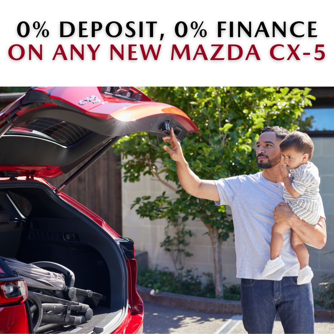 The 0% p.a. finance rate is only available on any new Mazda CX-5 model, purchased via South Auckland Mazda at RRP, between 01 August and 31 October 2025, while stocks last. The 0% p.a. interest rate is fixed for the term of the loan and is available with no deposit for terms up to 24 months, on a Credit Contract. An establishment fee of up to $400, a $9.20 PPSR fee and on-road costs of $1,650 will be charged. A paint charge of $700 applies to selected colours. Mazda Finance credit terms, conditions and standard lending criteria apply. Offer available until 31/10/2025.