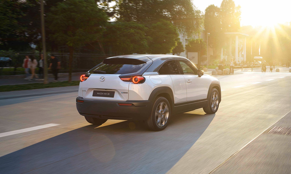 irst-Ever Mazda MX-30 Electric is here with an exhilarating new electric drivetrain and cutting-edge style, featuring sustainable materials that reduces its environmental impact without compromising the feeling of Zoom-Zoom.